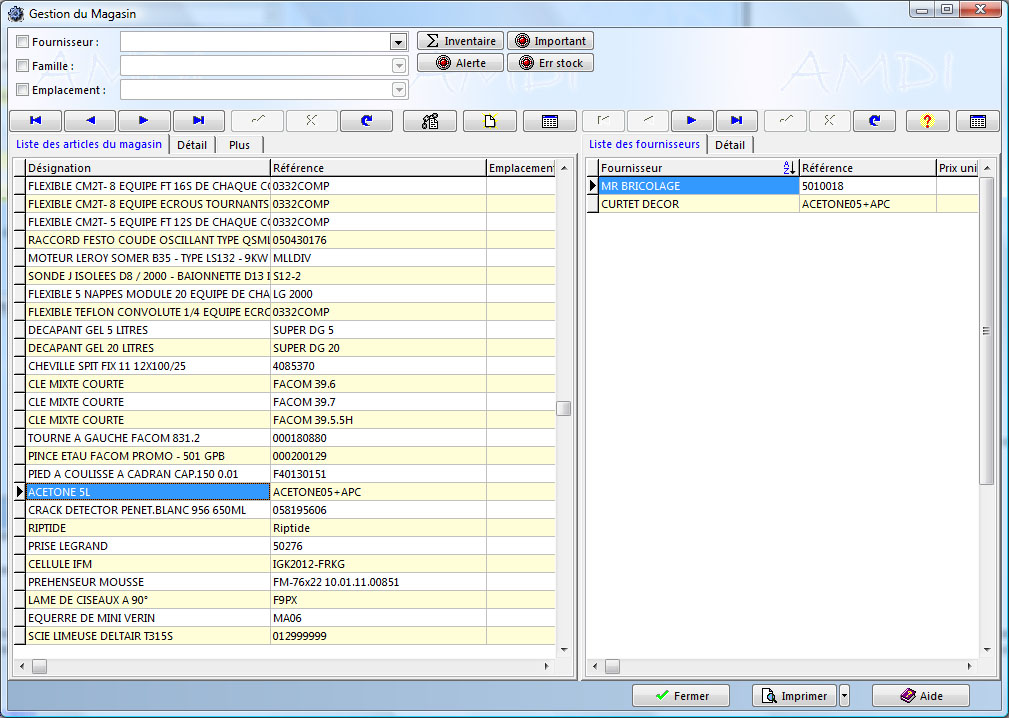- Classement par fournisseur, par référence, etc. Pour chaque article, plusieurs fournisseurs peuvent être définis, avec un prix et une remise unitaire.